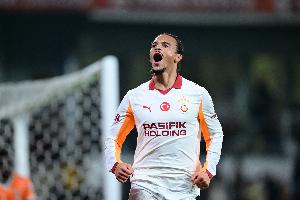上一次还是身穿拜仁球衣,萨内自2023年3月后首次头球破门