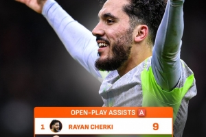 谢尔基本赛季英超运动战送出9助攻位居榜首,哈兰德、B费均7次