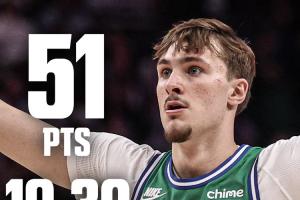 独行侠状元弗拉格打出生涯代表作,他全场出战33分33秒,30投19中(三分9中6)、罚球7中7,狂砍51分6篮板3助攻3抢断1盖帽,只有1次失误,正负值-2。